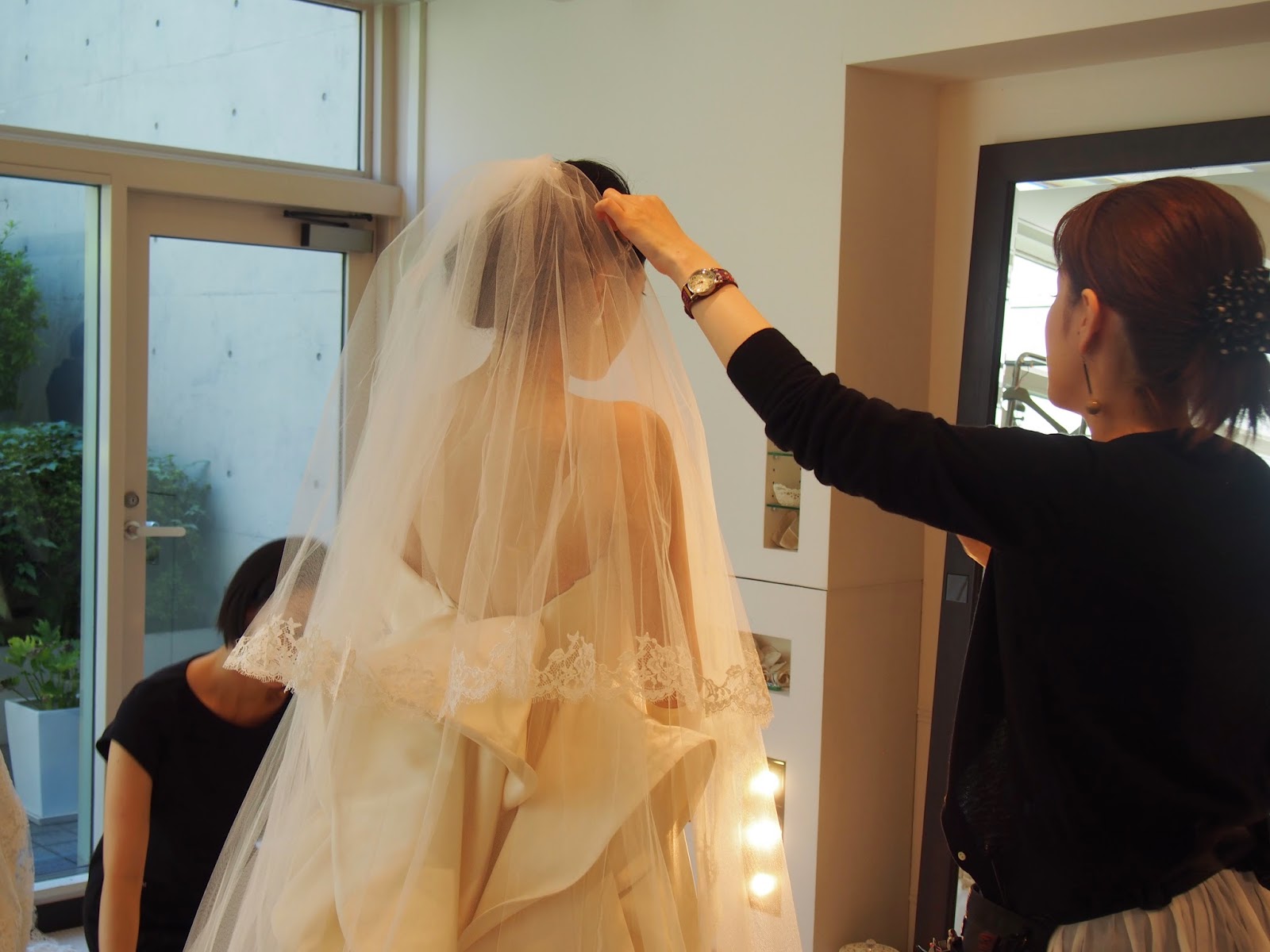 キラキラストーンのヘッドドレスがとてもよくお似合いでした