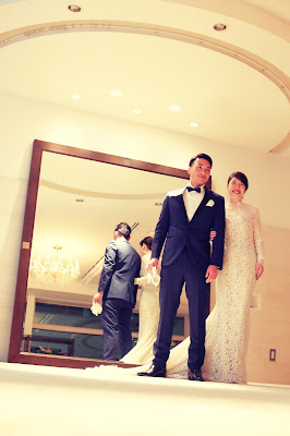 ミーチェのドレスとスーツを着こなしてくださりました。