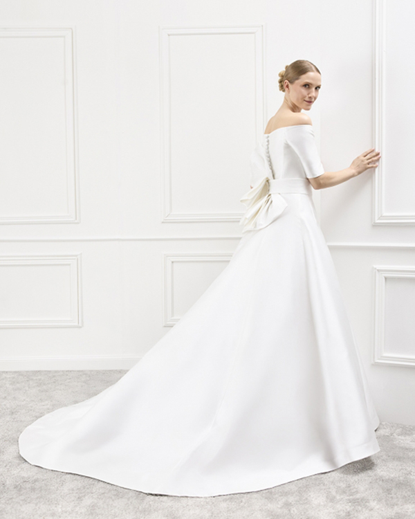 歴史的な建築や彫刻などの “美”からインスピレーションを得たファッション性の高いドレスが魅力のイタリアのオートクチュールブランドTOSCA SPOSE(トスカ・スポーザ)。引き算の美学から生まれた、究極なまでにシンプルさを追求したエレガントで品格溢れるドレスはまさに芸術品ともいえる。シルクを中心とした上質素材と流れるような曲線と大胆なカッティングで女性の優雅な美しさを引き立ててくれる。